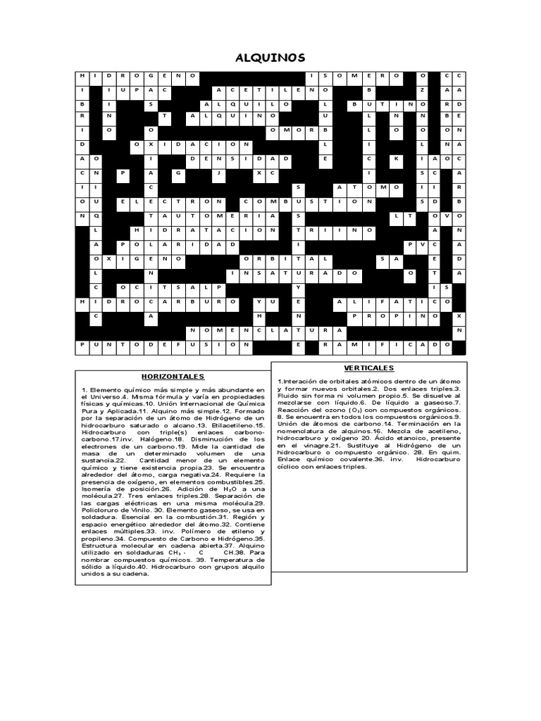 sustancia.22. Cantidad menor de un elemento Enlace químico covalente.36. inv. Hidrocarburo