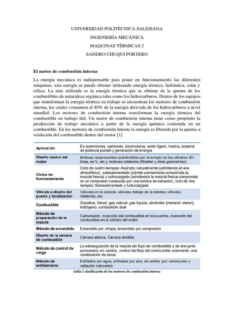 combustible. En los motores de combustión interna la energía es liberada por la quema u