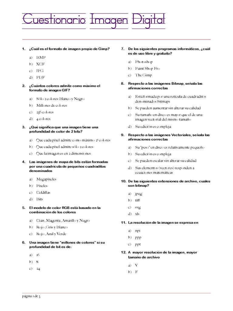 1. ¿Cuál es el formato de imagen propio de Gimp? 7. De los siguientes programas informáticos, ¿cuál