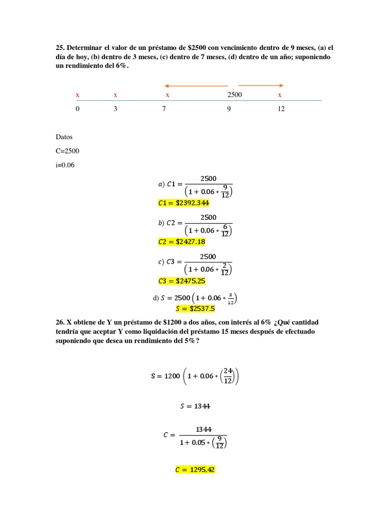 Determinar el valor de un préstamo de $2500 con vencimiento dentro de 9 meses, (a) el