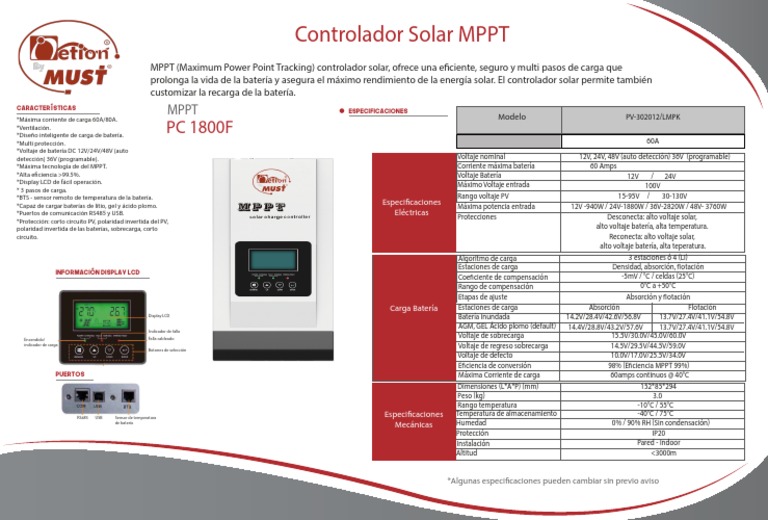 MPPT Especificaciones