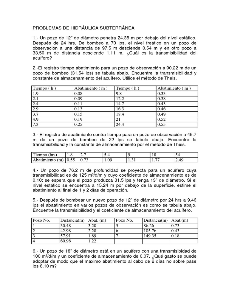6.- Un pozo de 18” de diámetro está en un acuífero con una transmisibidad de