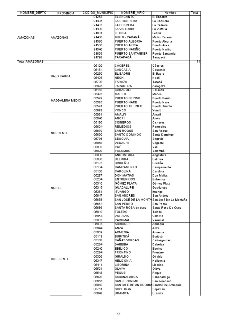 Códigos DANE de Municipios en Colombia