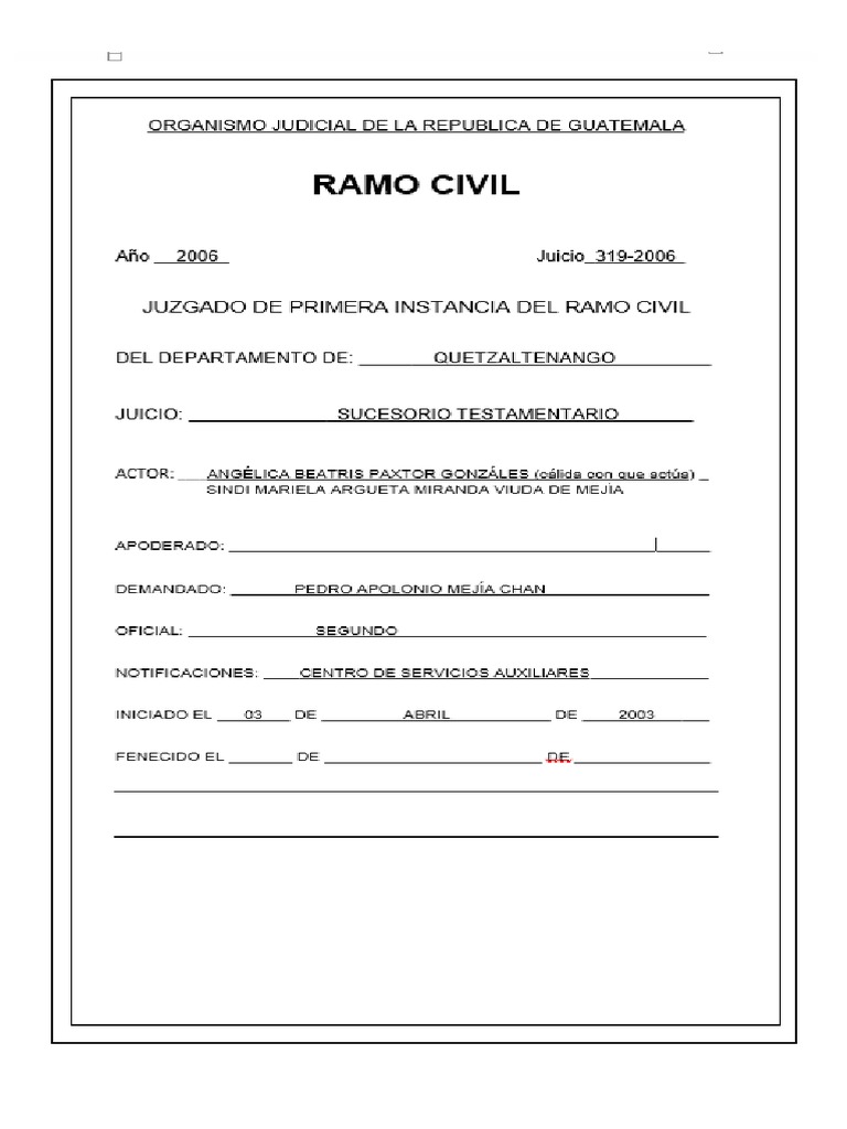 JUZGADO DE PRIMERA INSTANCIA DEL RAMO CIVIL DE
