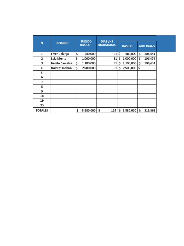 N NOMBRE BASICO TRABAJADAS BASICO AUX TRANS