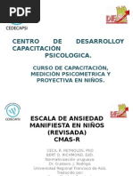 ansiedad manifiesta en nifios revisada (CMASR; Reynolds y