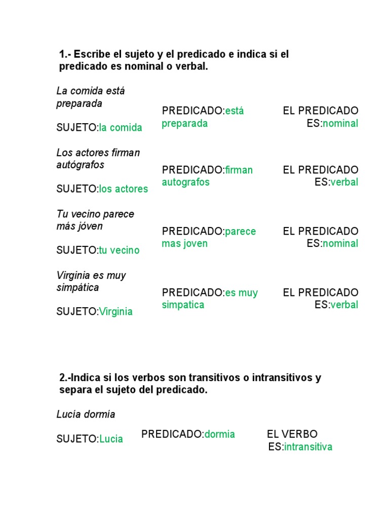 SUJETO PREDICADO COMP. DIRECTO COMP.
