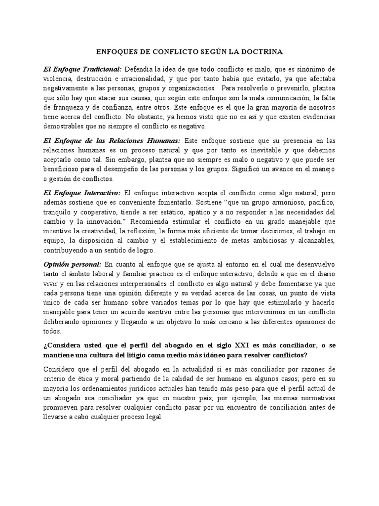 Enfoques de Conflicto Según La Doctrina