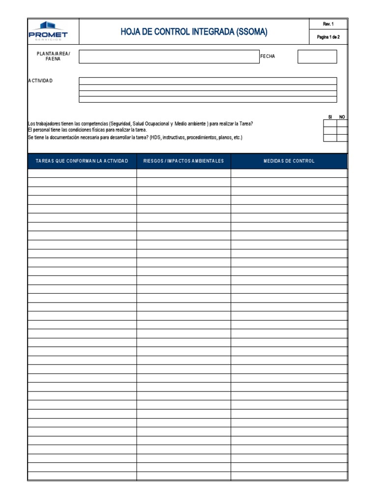 HOJA DE CONTROL INTEGRADA (SSOMA) Pagina 1 de 2