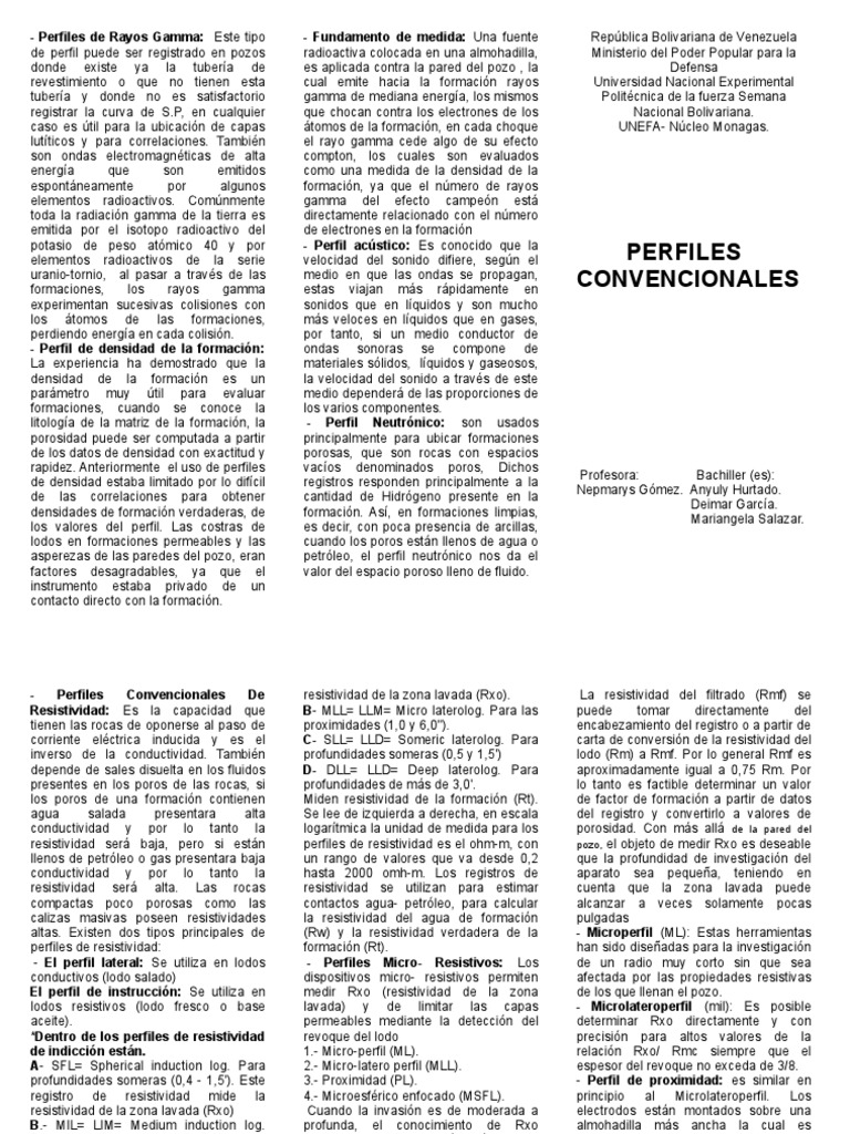 - El perfil lateral: Se utiliza en lodos - Perfiles Micro- Resistivos: Los de un radio muy corto sin que sea