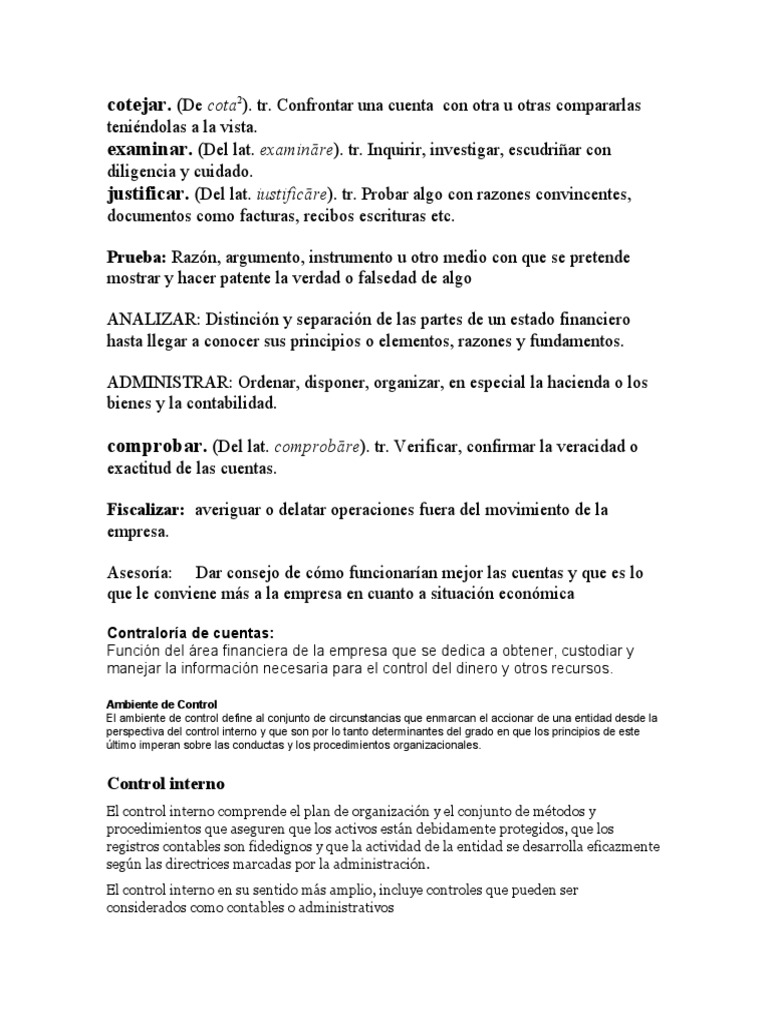 perspectiva del control interno y que son por lo tanto determinantes del grado en que los principios de este