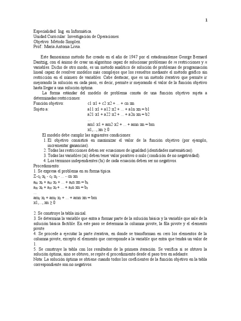 Dantzig, con el ánimo de crear un algoritmo capaz de solucionar problemas de m restricciones y n