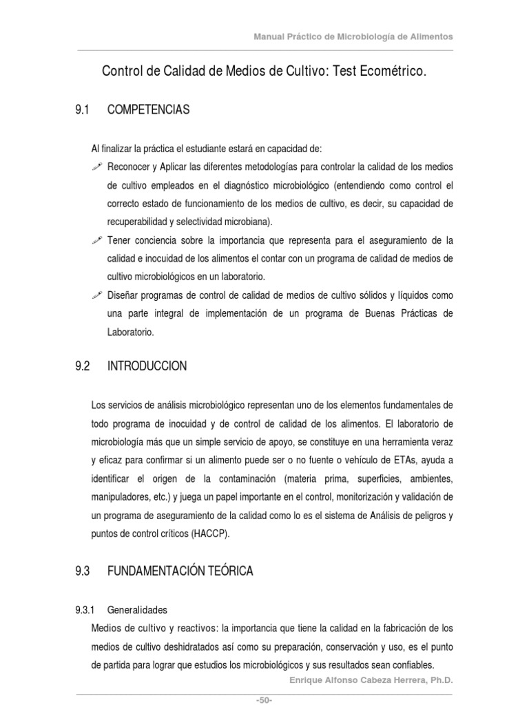 9.3.2 Criterios mínimos para asegurar un control de calidad de medios de cultivo