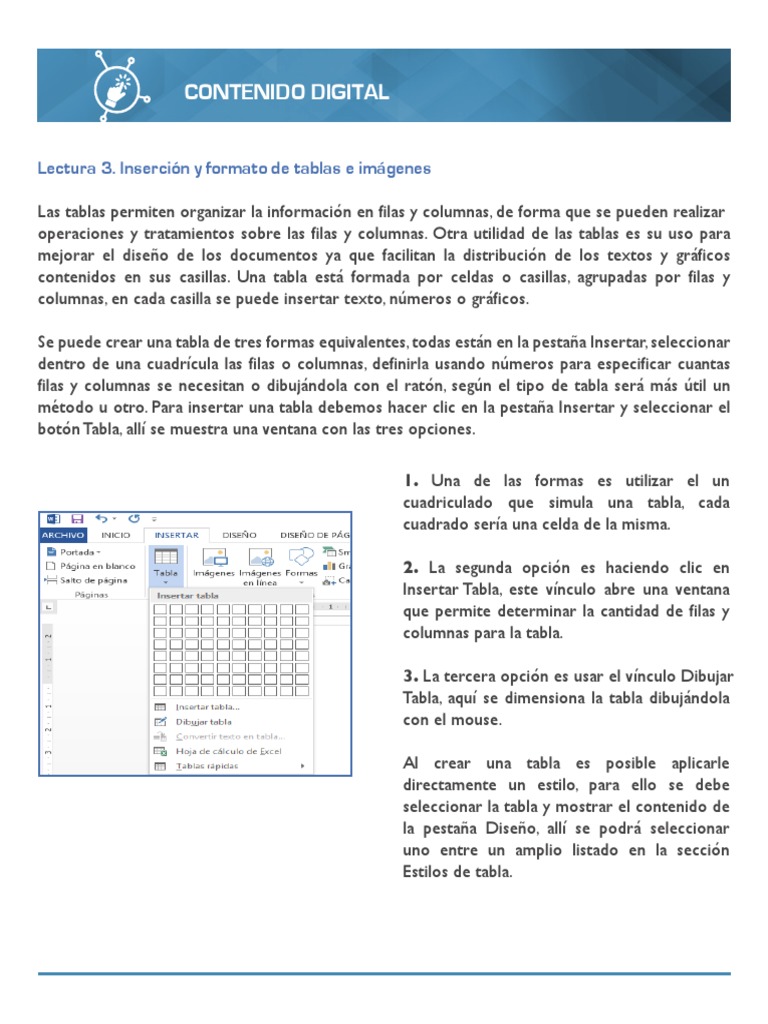 Lectura 3. Inserción y formato de tablas e imágenes