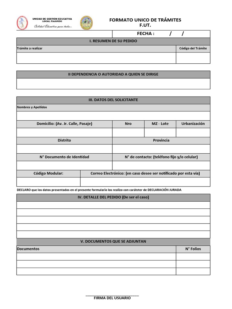 Código Modular: Correo Electrónico: (en caso desee ser notificado por esta vía)