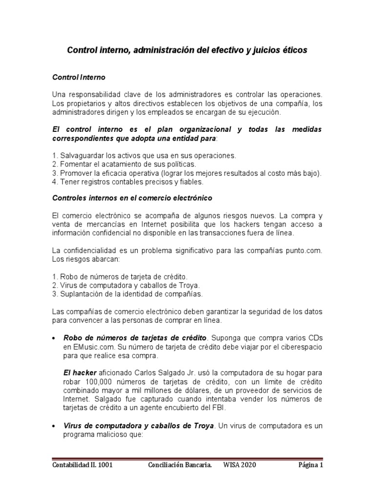 Contabilidad II. 1001 Conciliació n Bancaria. WISA 2020 Pá gina 1