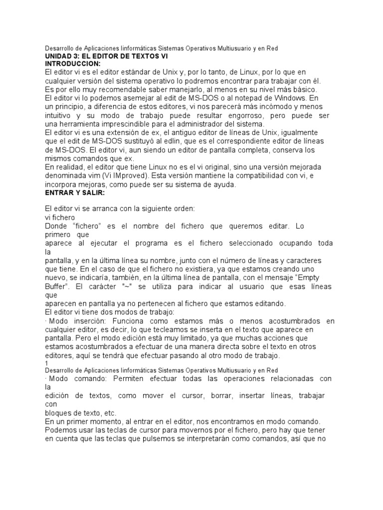 de MSDOS. El editor vi, aun siendo un editor de pantalla completa, conserva los