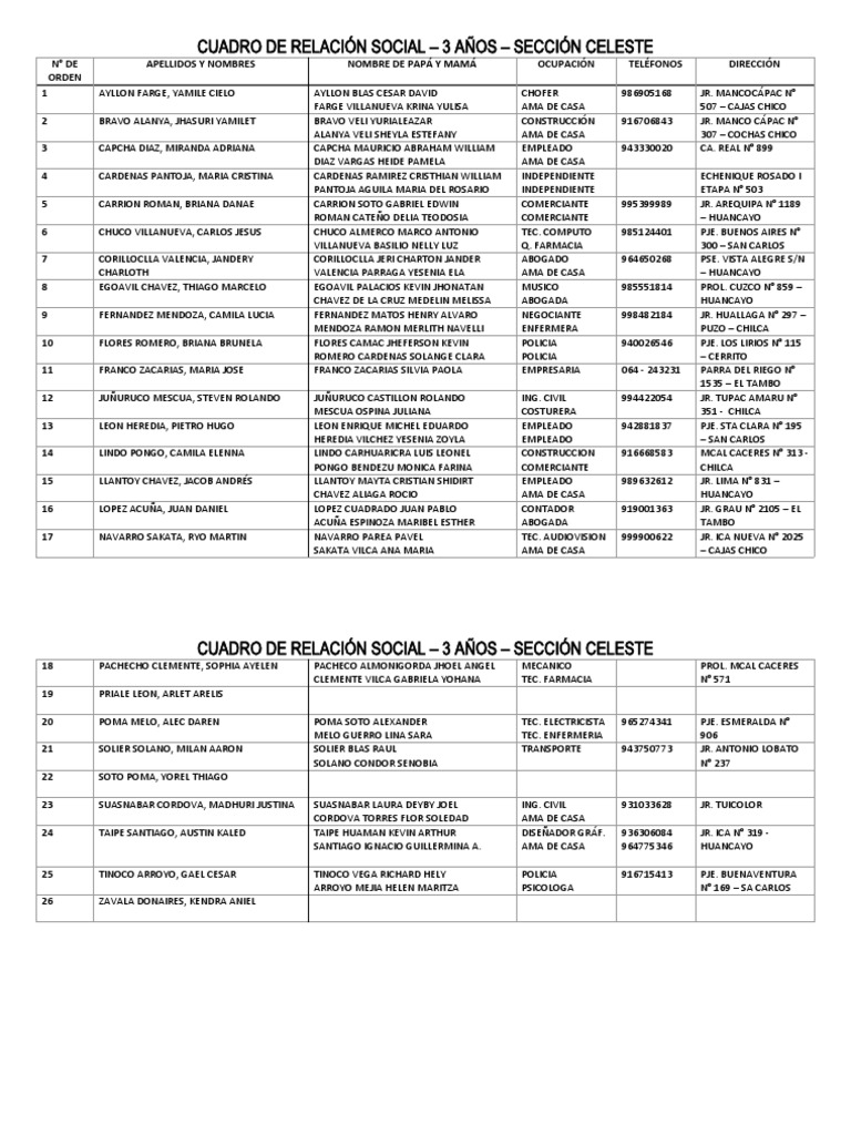 CUADRO DE RELACIÓN SOCIAL – 3 AÑOS – SECCIÓN CELESTE