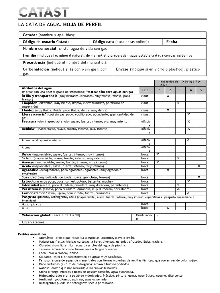 (marcar con una cruz el grado de intensidad) *marcar sólo para aguas con gas