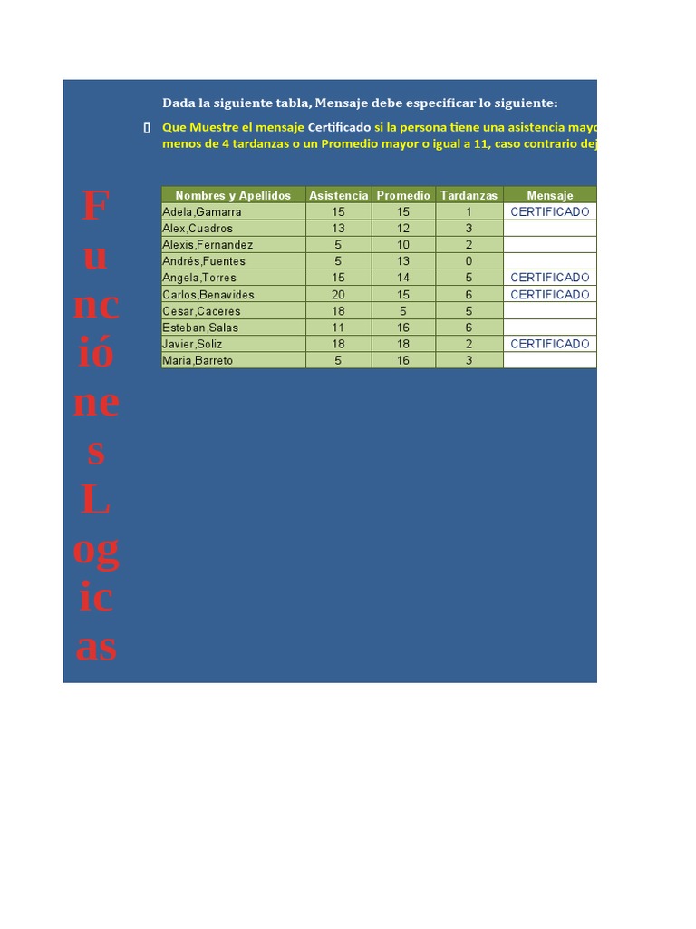 F Que Muestre el mensaje Certificado si la persona tiene una asistencia mayor a 14 y cumplan