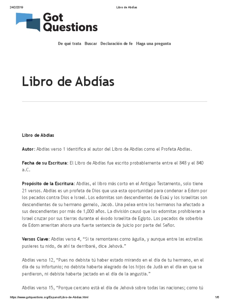 Propósito de la Escritura: Abdías, el libro más corto en el Antiguo Testamento, solo tiene