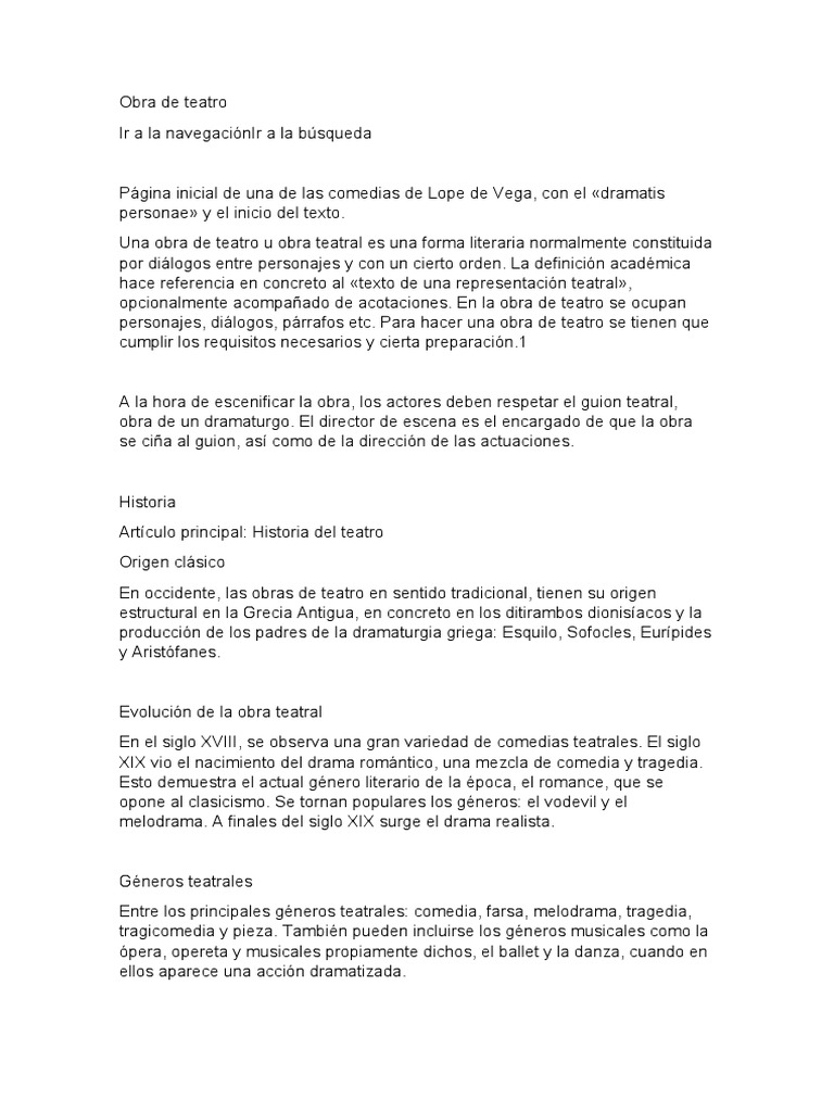 Una obra de teatro u obra teatral es una forma literaria normalmente constituida