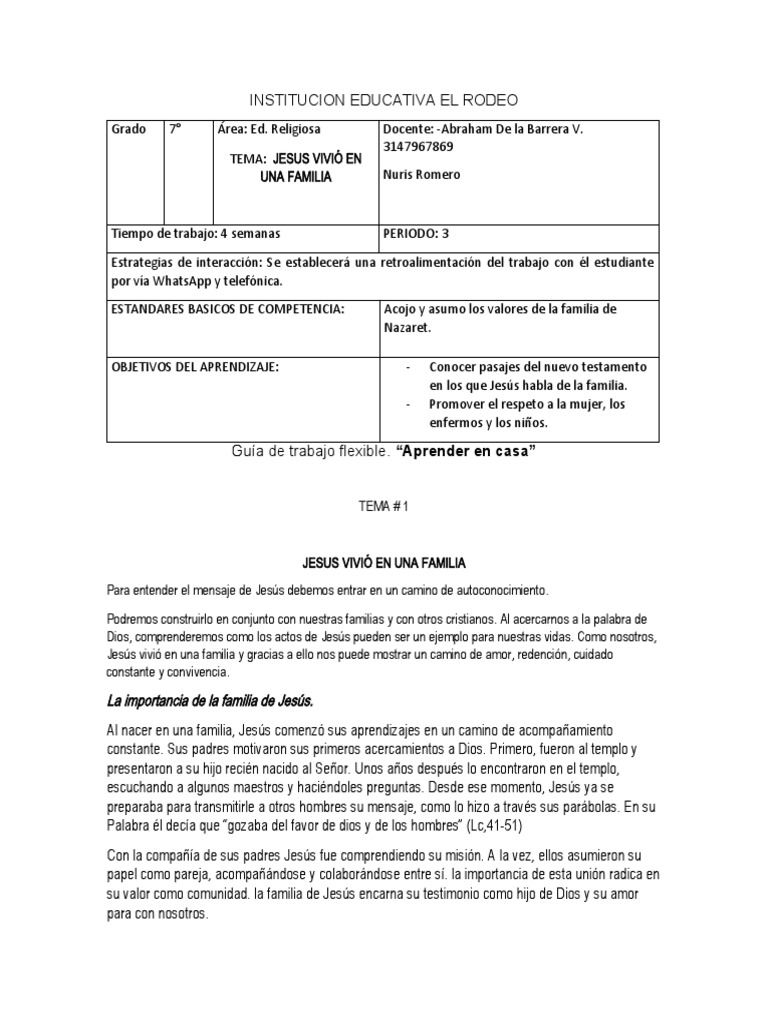 JESUS VIVIÓ EN UNA FAMILIA