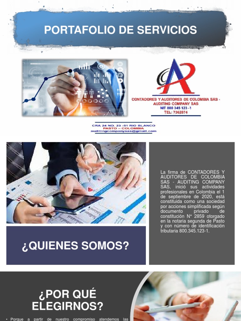 de auditoría, revisoría fiscal, impuestos, finanzas, consultorías y otros