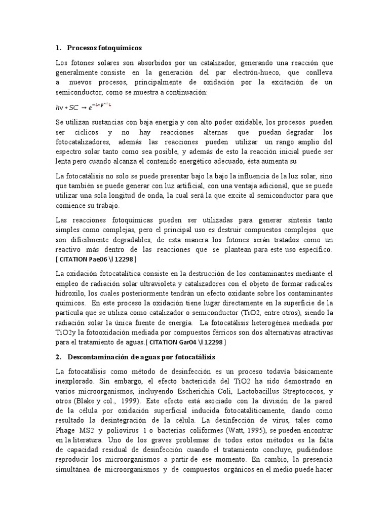 Paez, C. &. (2006). La fotocatálisis: Aspectos fundamentales para una buena remoción