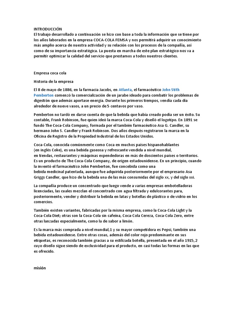 a ser los que eshoy en día.La presencia en el mercado de COCA COLA se debe al desarrollado
