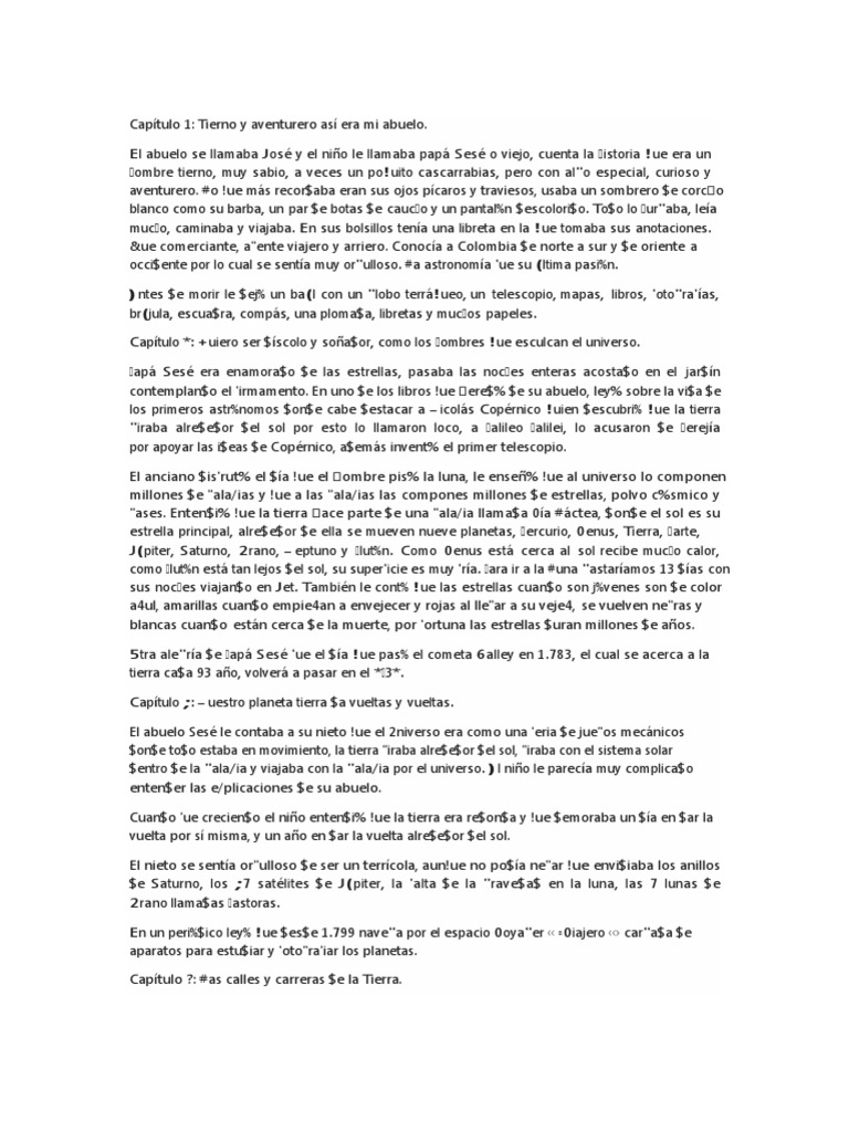 apá Sesé era enamora$o $e las estrellas, pasaba las noces enteras acosta$o en el jar$ín