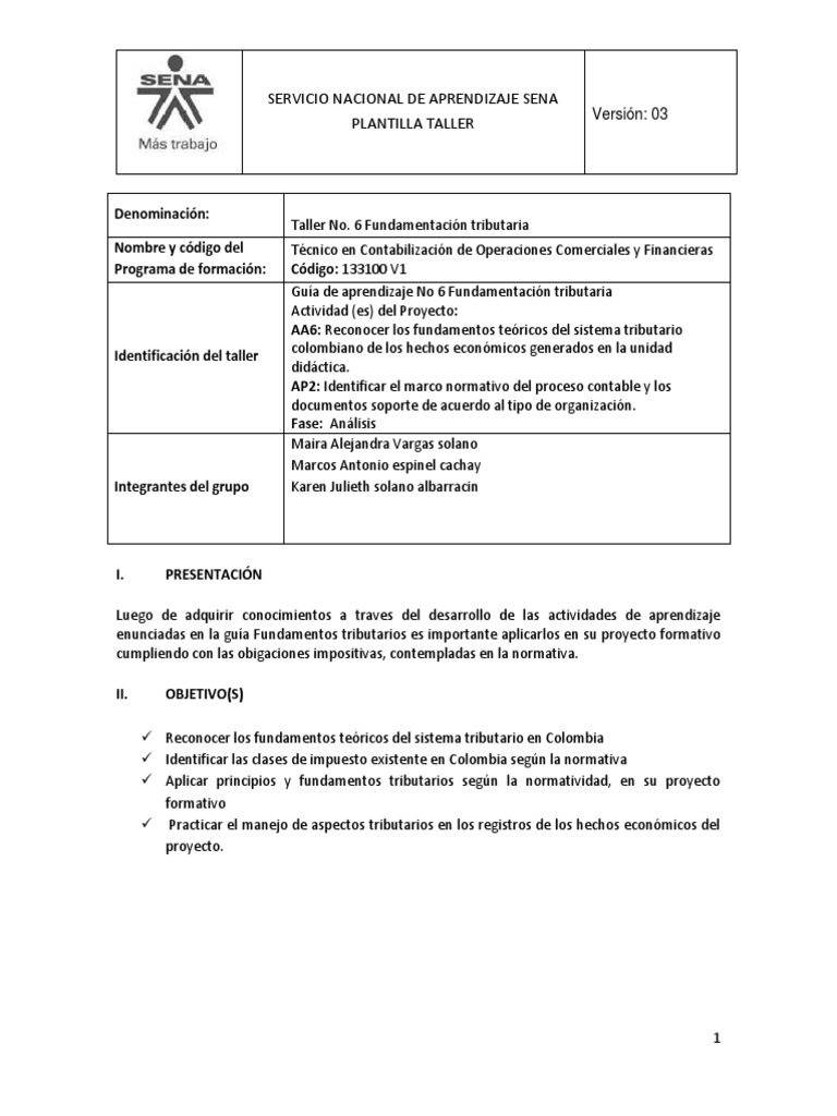 enunciadas en la guía Fundamentos tributarios es importante aplicarlos en su proyecto formativo