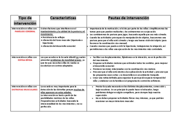 Intervención en niños con La escuela es muy importante para la o Prestar la ayuda necesaria en los distintos desplazamientos, como subir y