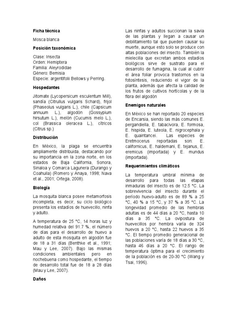 Género: Bemisia el área foliar provoca trastornos en la