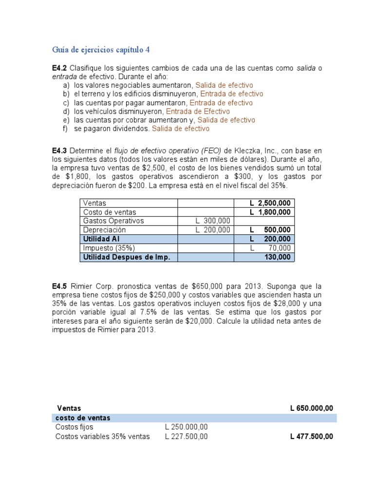 E4.5 Rimier Corp. pronostica ventas de $650,000 para 2013. Suponga que la