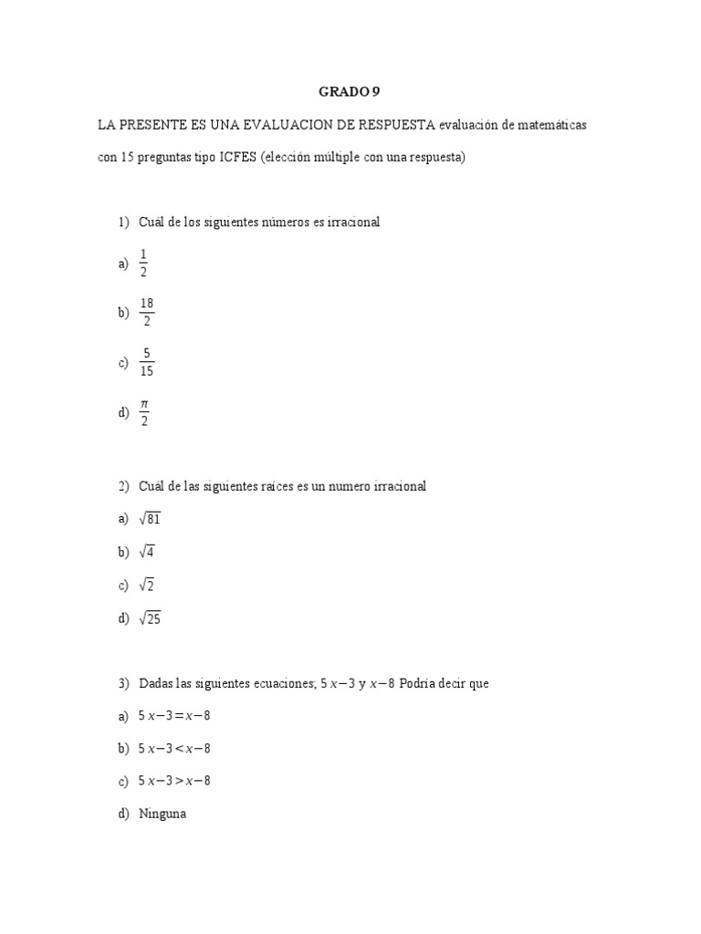 con 15 preguntas tipo ICFES (elección múltiple con una respuesta)