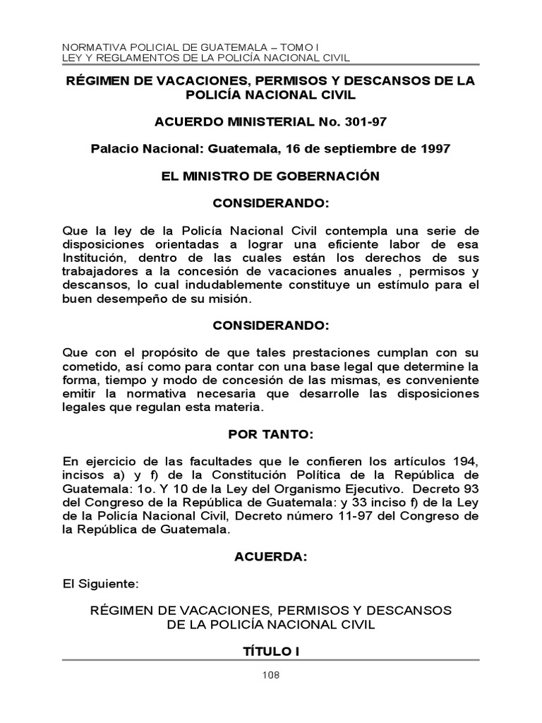 NORMATIVA POLICIAL DE GUATEMALA – TOMO I