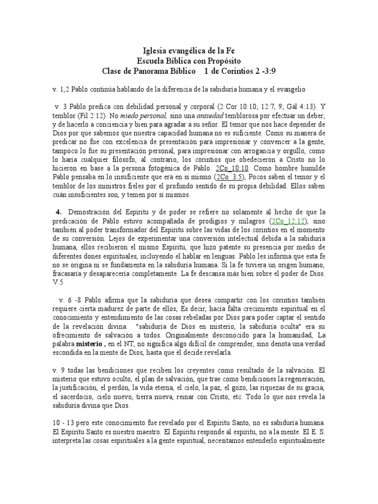 Clase de Panorama Bíblico 1 de Corintios 2 -3:9