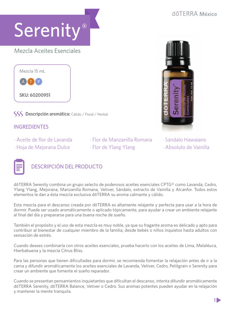 dōTERRA Serenity combina un grupo selecto de poderosos aceites esenciales CPTG® como Lavanda, Cedro,