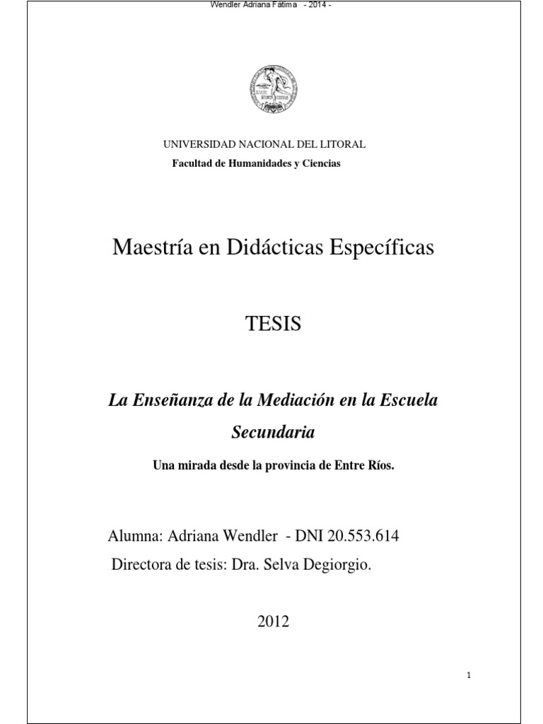 enseñanza de la mediación en las escuelas secundarias de la provincia de Entre Ríos.