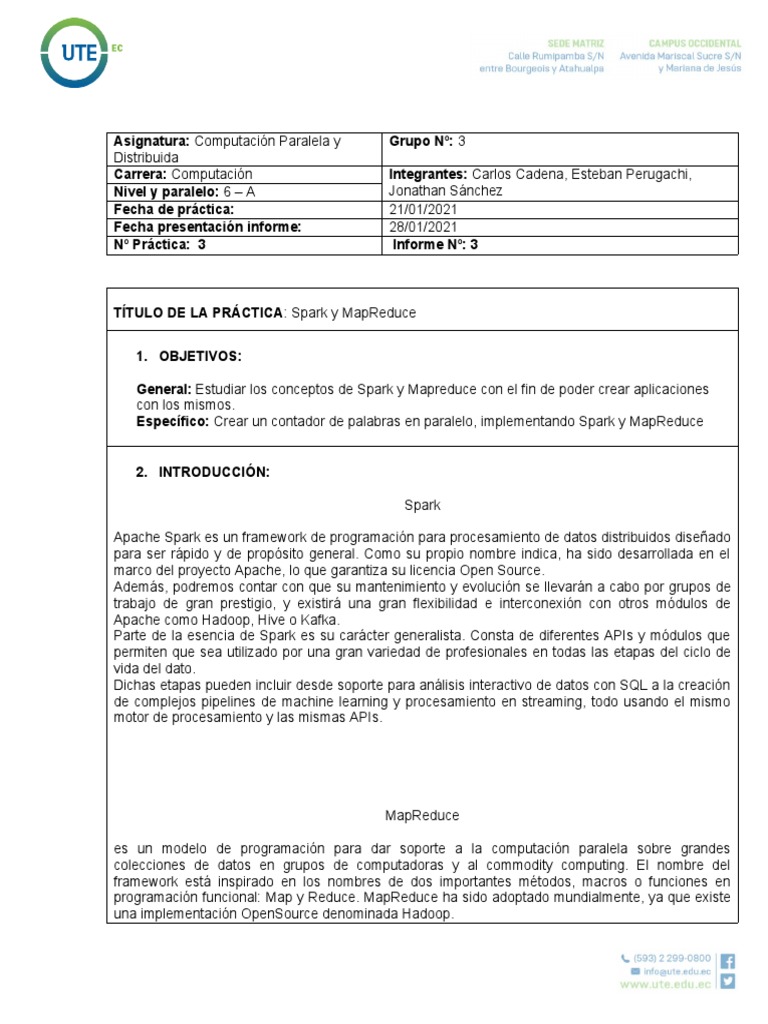 Específico: Crear un contador de palabras en paralelo, implementando Spark y MapReduce