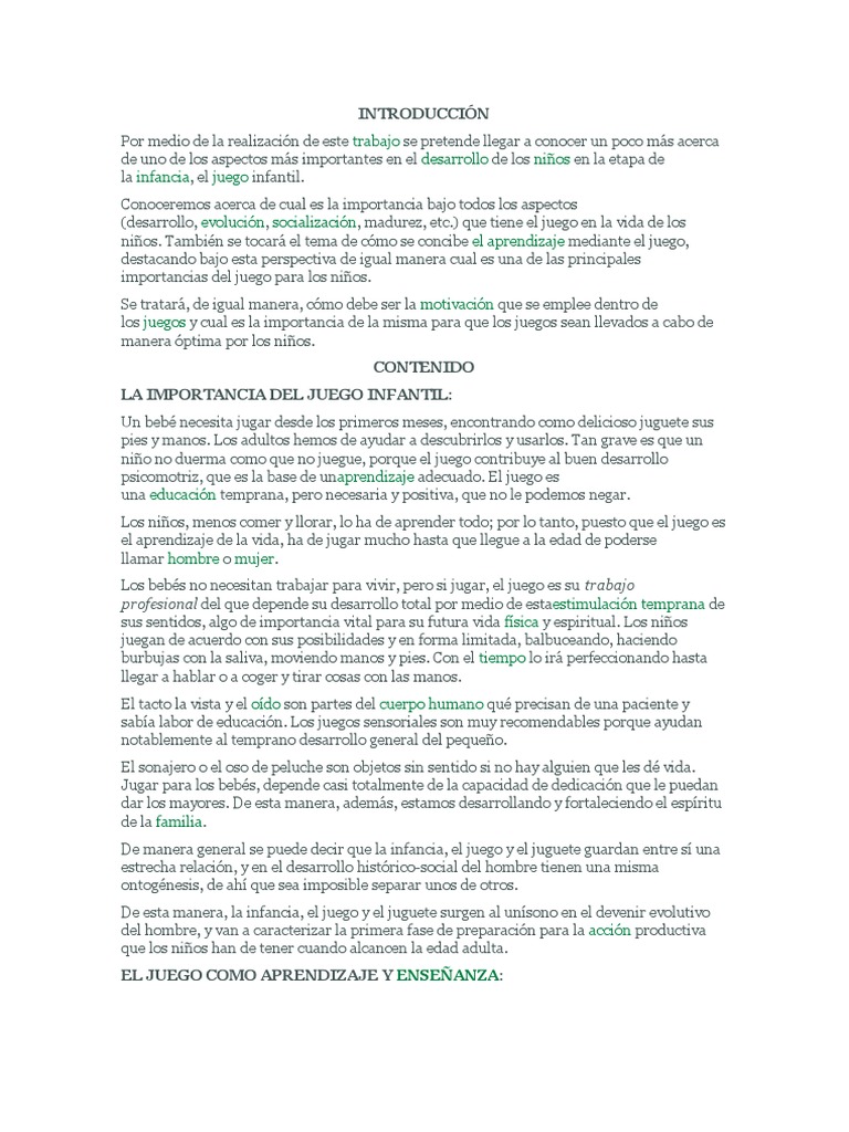 llegar a entender la gran importancia que tiene el juego para el desarrollo y logro de los