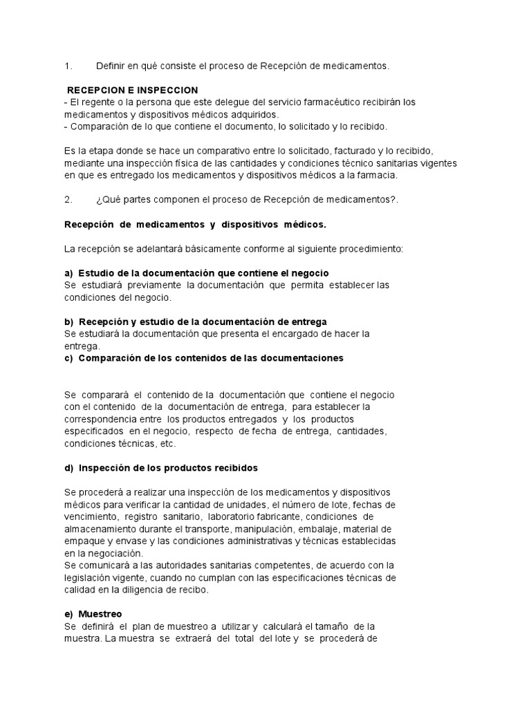 de recepción todo lo relacionado con los aspectos técnicos Del medicamento y dispositivos