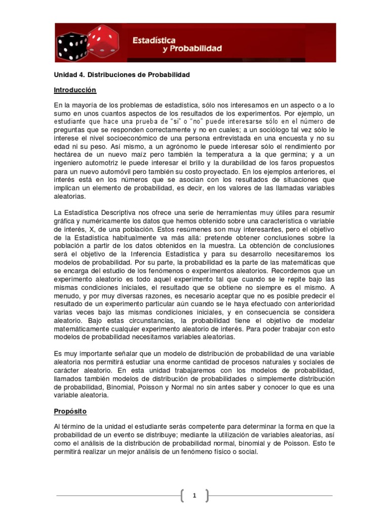 carácter aleatorio. En esta unidad trabajaremos con los modelos de probabilidad,