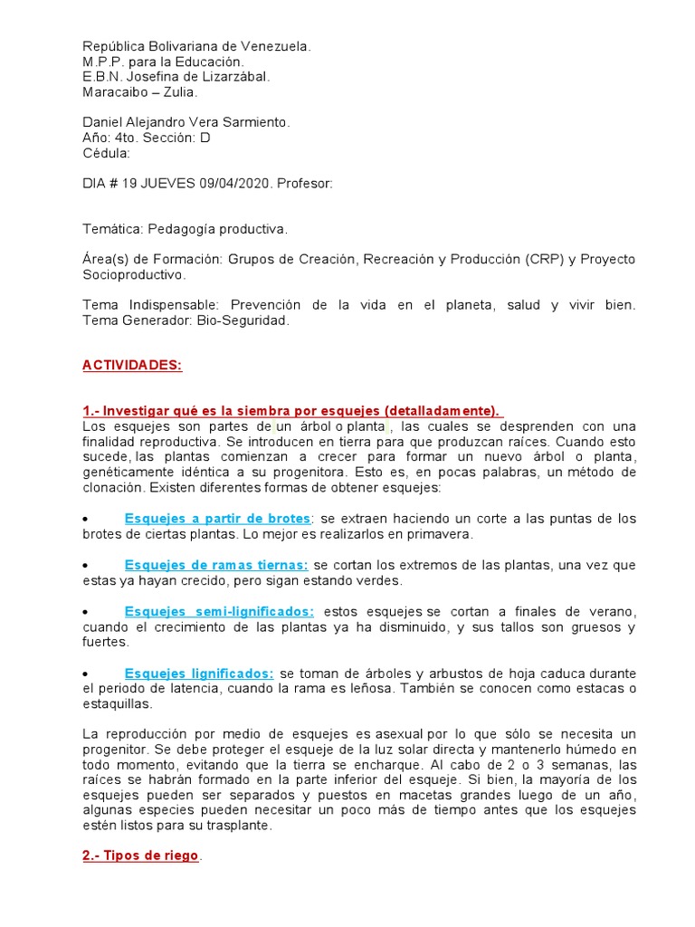 1.- Investigar qué es la siembra por esquejes (detalladamente).