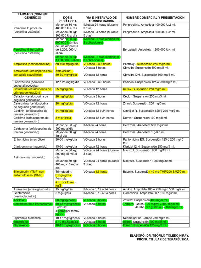 Dicloxacilina (penicilina 12.5-25 mg/kg/día VO cada 6 u 8 horas Posipén. Suspensión 125 ó 250 mg/5 ml.