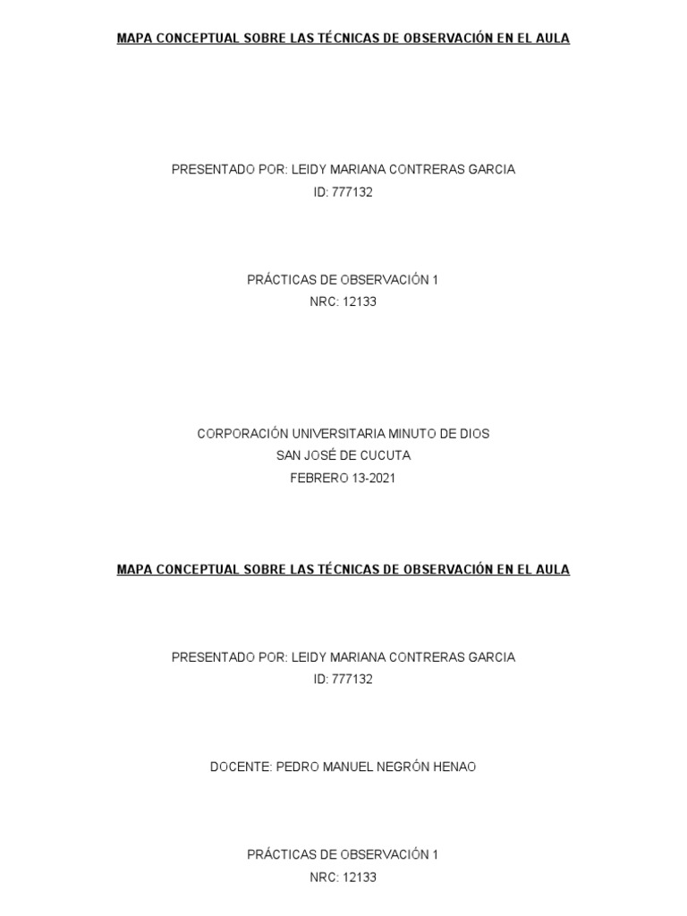 MAPA CONCEPTUAL SOBRE LAS TÉCNICAS DE OBSERVACIÓN EN EL AULA