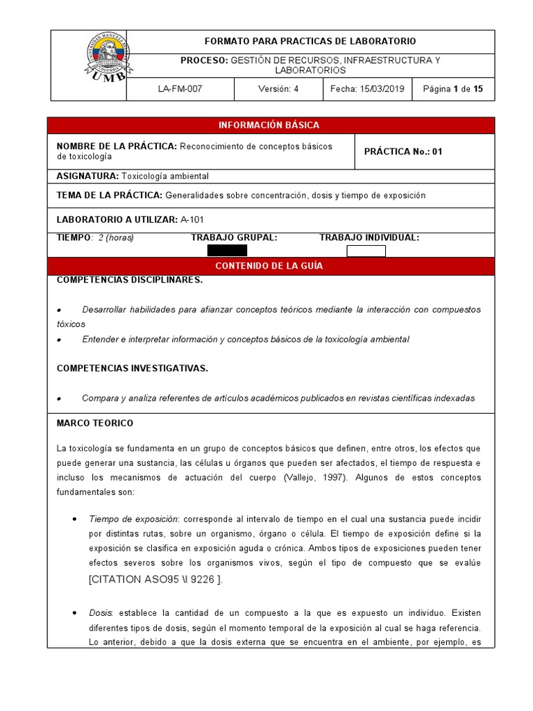 literatura académica. Para ello analice conceptos básicos de toxicología, aplicando lo observado de