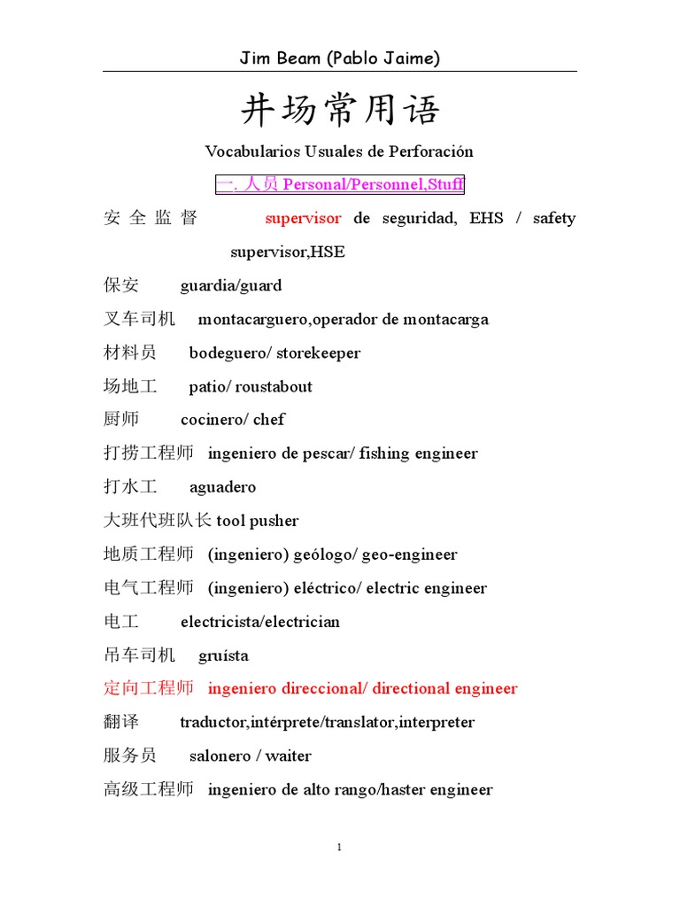 钻井工程师 ingeniero de perforación/ drilling engineer