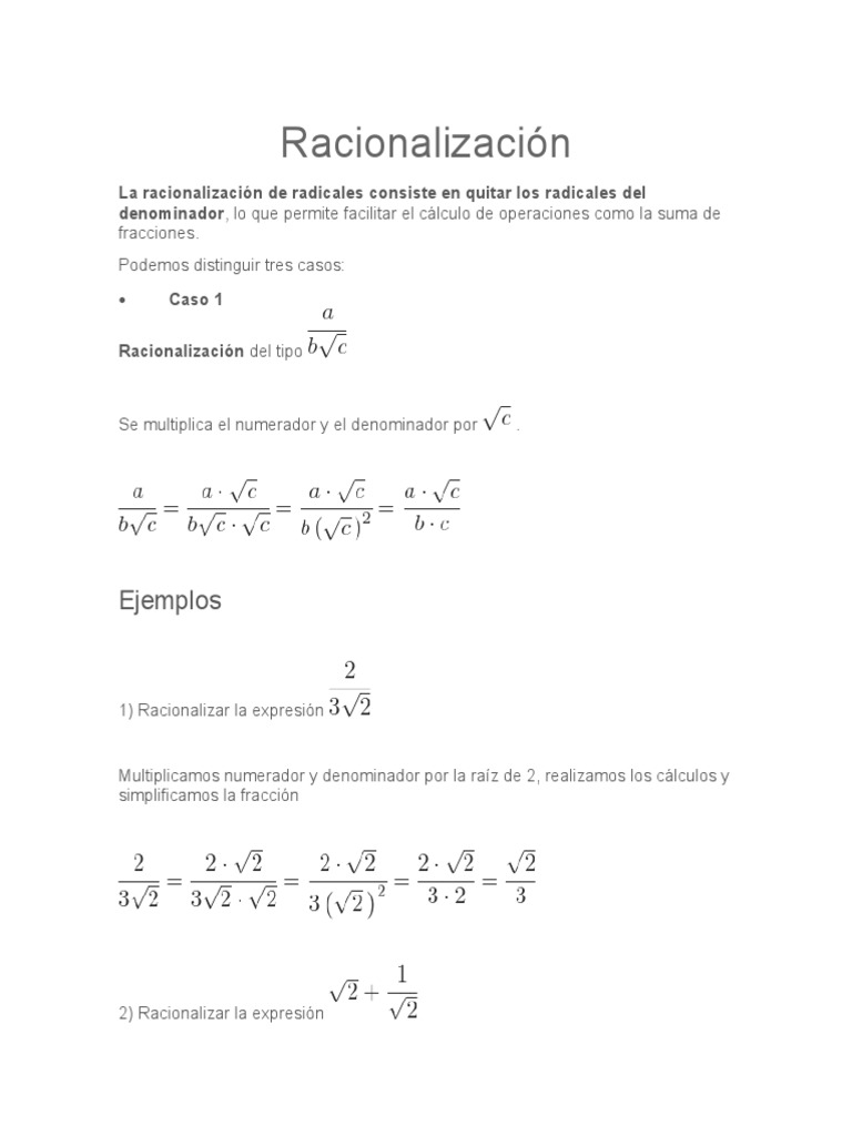 La racionalización de radicales consiste en quitar los radicales del